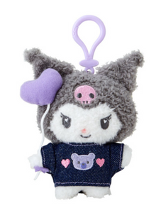 Experience the irresistible charm of Sanrio's Denim Series with this plush keychain. Our lovable Sanrio character sports a trendy Demin ensemble and gleefully holds onto a balloon.